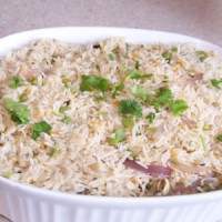 Rice cooked with butter, spices and pea
